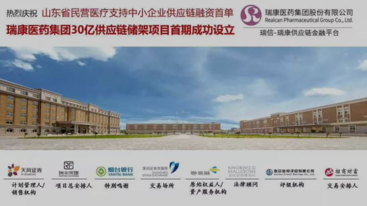 11月6日,瑞康醫藥集團30億供應鏈儲架項目首期成功設立,這也是山東省民營醫療支持中小企業供應鏈融資的首單。
